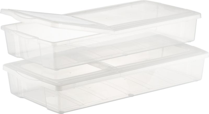 I'm in love with these ones with the flip open tops from Crate & Barrel. I have to say that clear is the way to go on these storage containers -- otherwise I would have to check every single one before I found what I was looking for. (Maybe a label maker would come in handy too???)